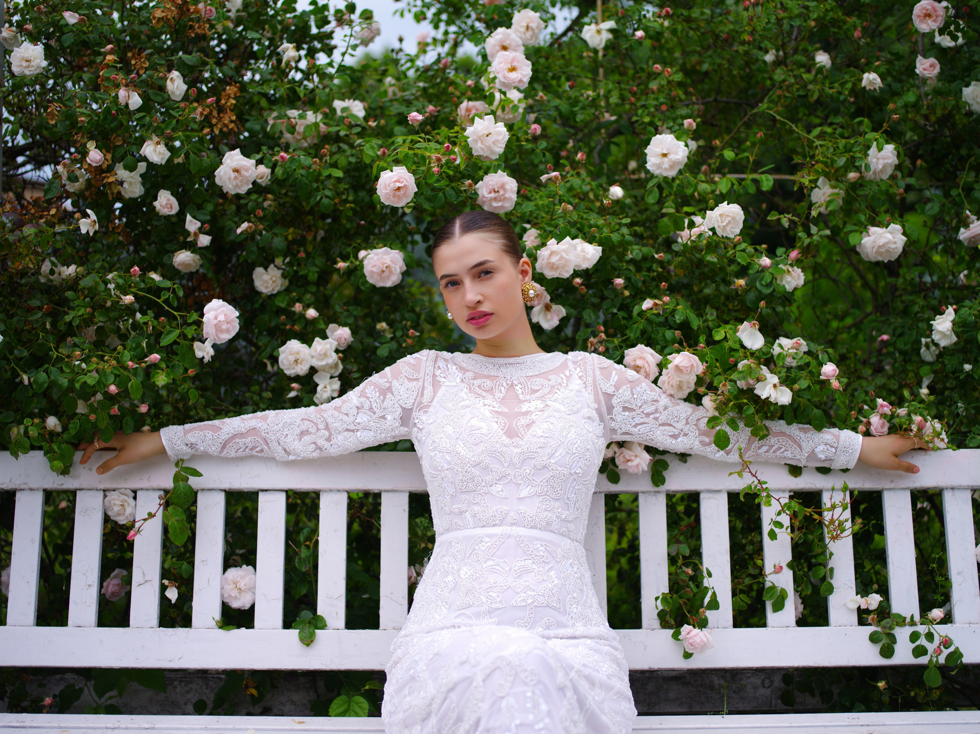 The story opens with a sense of structure and control.Defined by sculptural silhouettes, rich textures, and deliberate composition, the bride appears composed and self-possessed. The imagery emphasizes posture, balance, and presence, translating classical ideas of portraiture into a contemporary fashion context.Here, elegance is expressed through precision — each gesture intentional, each frame composed as a statement.